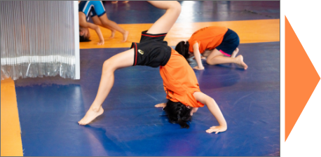 ⽕曜⽇に、マット運動を中心とした器械体操とレスリングを組み合わせたクラスを実施しています。